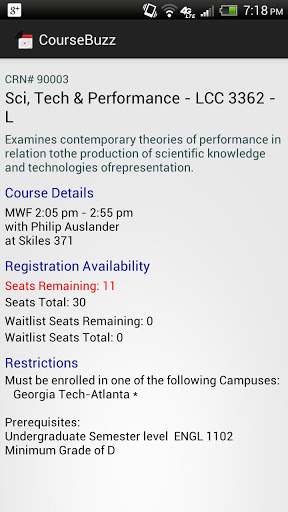 Heads up! The android app has been removed from Google Play due to issues with the scraper. You can visit CourseShark for the the seat watcher function. The website is still up and running and will work for Spring 2013.
